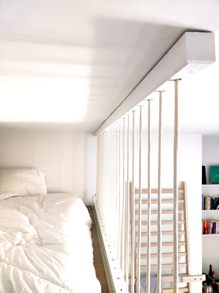 - Une corde en coton pour un look doux et épuré. Cependant, le coton présente plusieurs inconvénients : il est moins résistant, peut se détendre avec le temps et accumule facilement la poussière. Il est à éviter lorsque la résistance au poids du corps est essentielle. La corde en coton convient uniquement pour des usages décoratifs ou lorsqu’aucune contrainte de sécurité n’est requise.