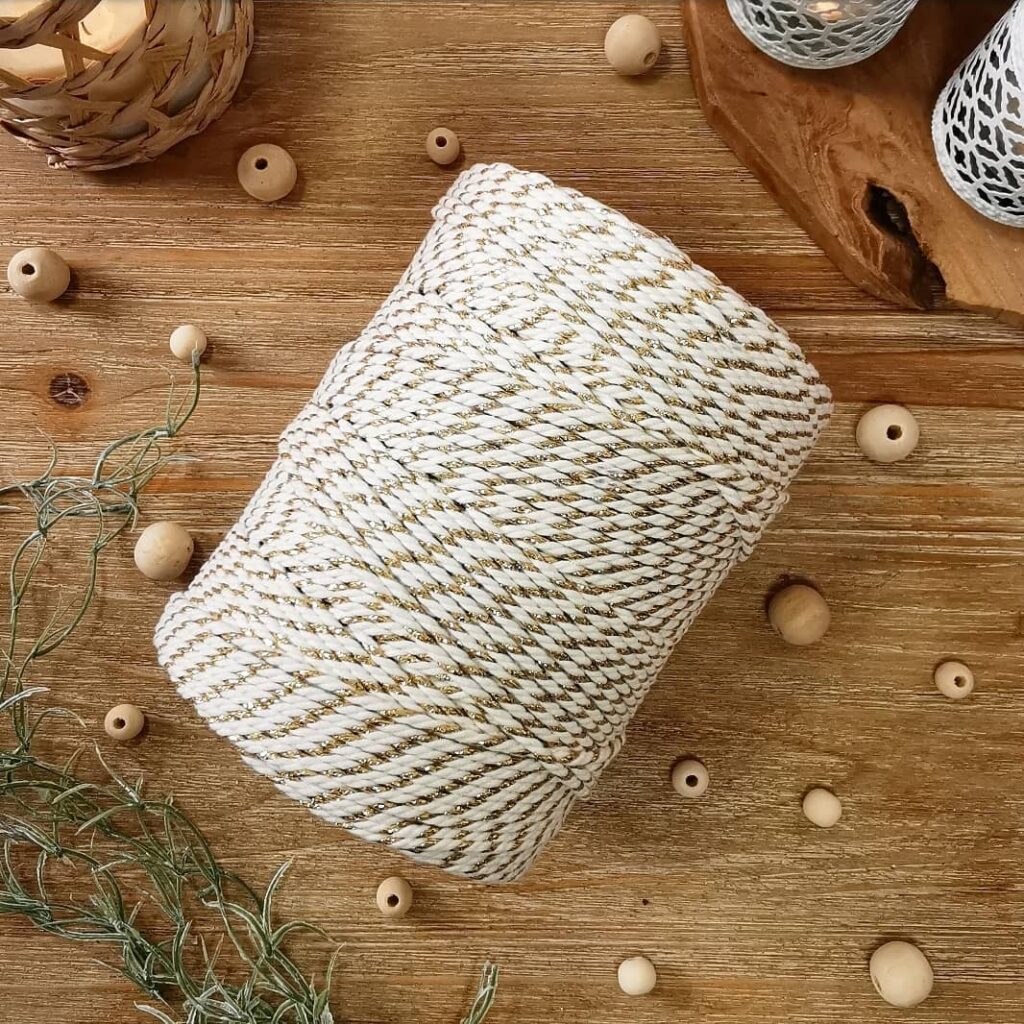 - Corde en coton torsadé : Parfaite pour apprendre le macramé, cette corde se noue et se défait facilement tout en gardant une bonne tenue. Elle est idéale pour les franges, plumes et pompons, bien que son rendu soit légèrement ondulé après peignage. C’est la corde la plus plébiscitée, notamment de couleur écru de 3 mm de diamètre.