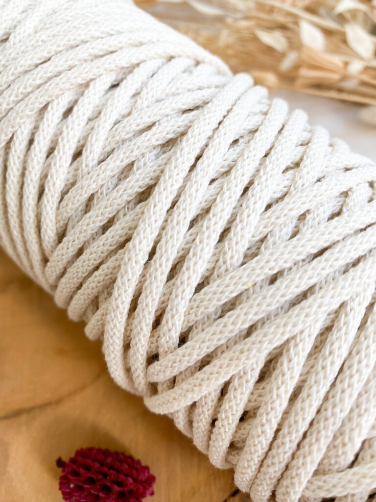 - Corde en coton tressé : Composée de plusieurs brins tressés ensemble, cette corde est moelleuse et souple, idéale pour des créations aérées et légères. Elle peut contenir un cordon intérieur pour plus de rondeur et de solidité, mais elle n’est pas peignable comme les autres cordes.