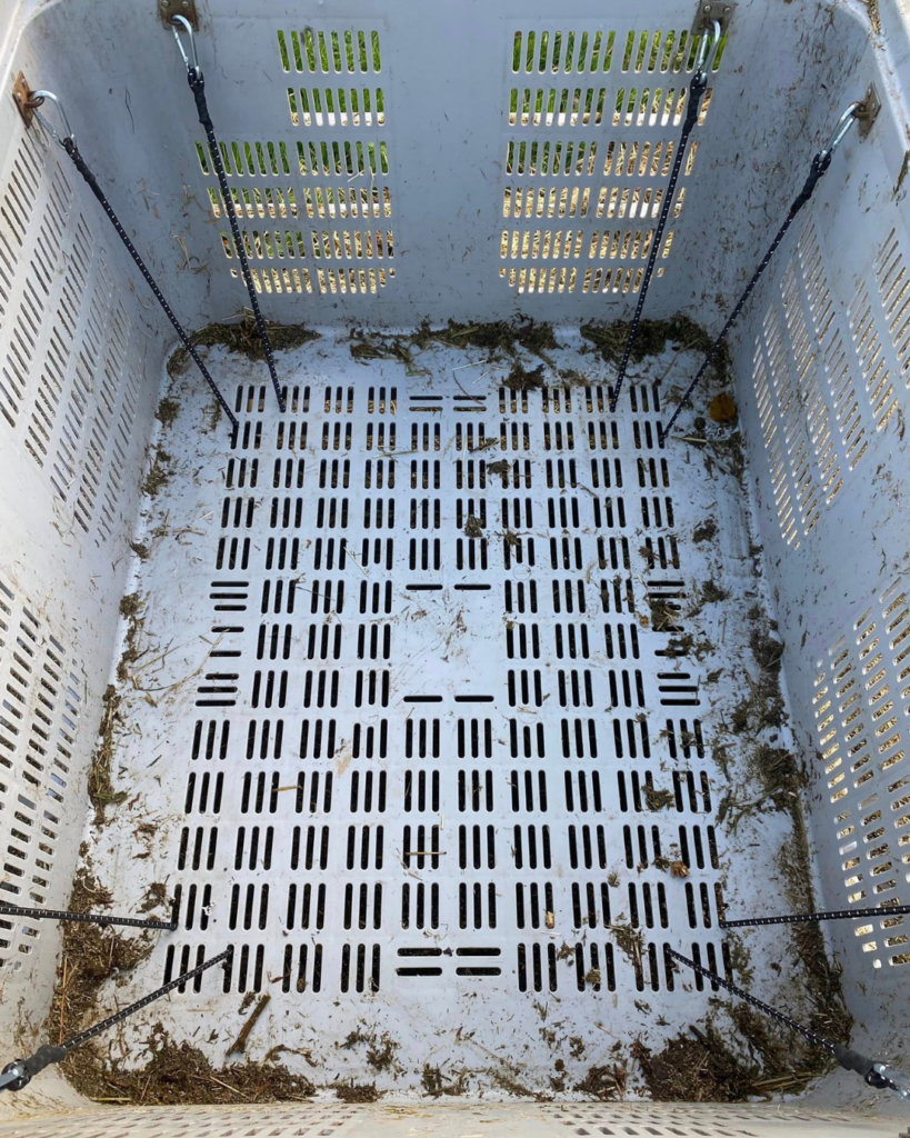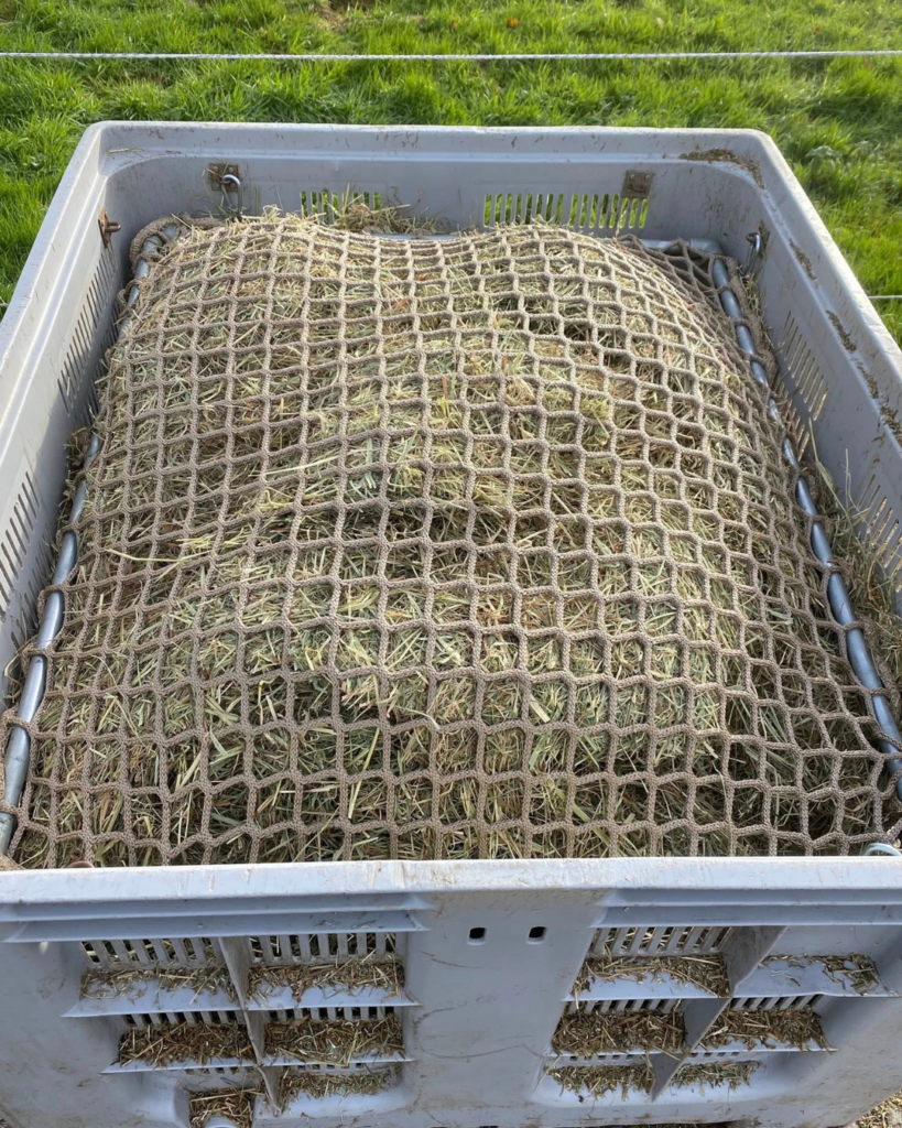 - Le filet à foin nappe est positionné au-dessus du palox, pour le recouvrir.