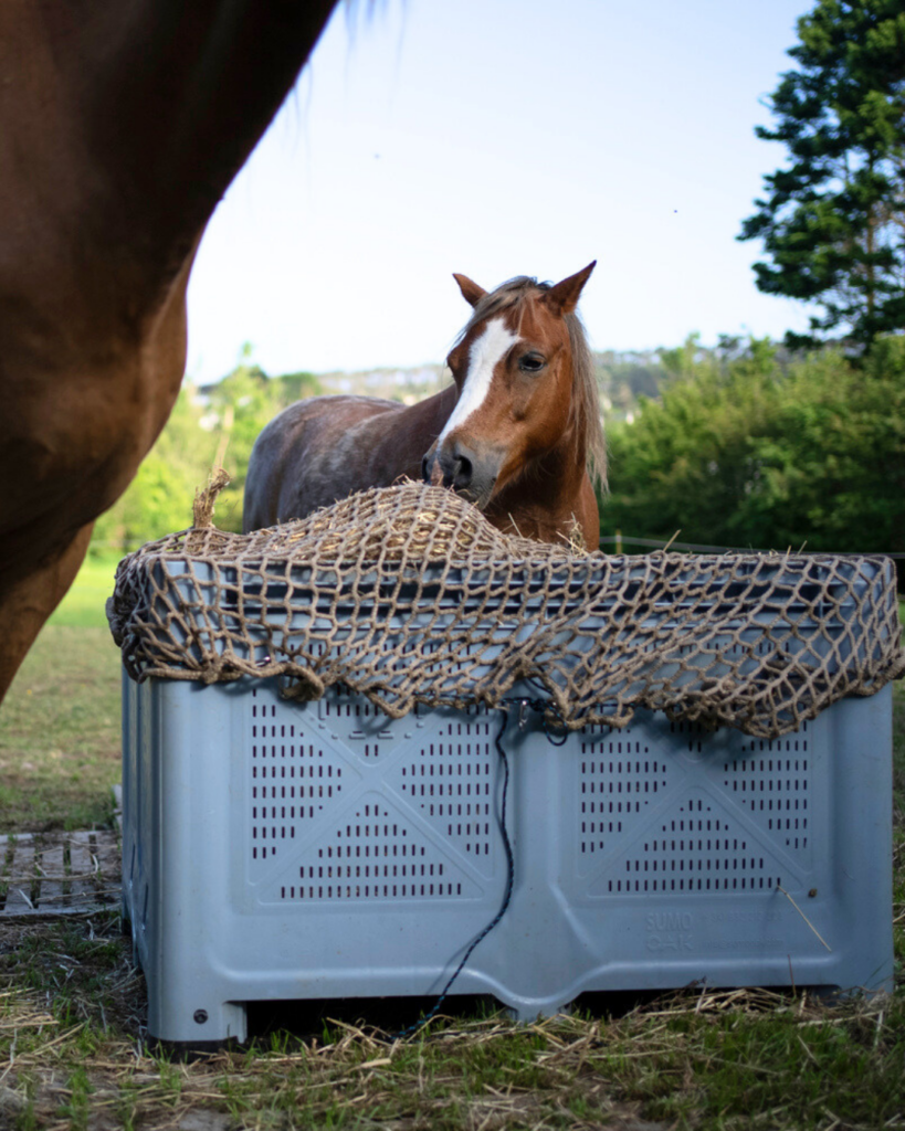 Le filet à foin nappe installé sur palox en plastique est un système adopté par de nombreux propriétaires de chevaux au pré ou au paddock. En effet, le format du palox est particulièrement pratique. Compact et mobile, il permet de multiplier facilement les points de nourrissage. En répartissant les zones d’accès au foin, vous créez du mouvement dans le groupe et favorisez une dynamique plus naturelle. Les chevaux ne restent plus statiques autour d’un seul point d’alimentation, ce qui contribue également à limiter les tensions entre dominants et dominés.