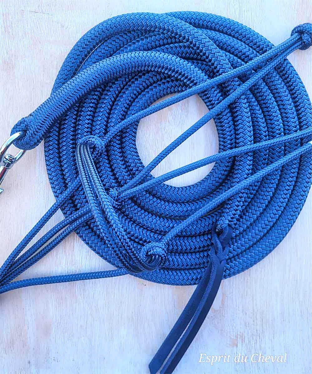Un licol est généralement conçu à partir d'une tresse éthologique de diamètre 6 ou 6,5 mm.