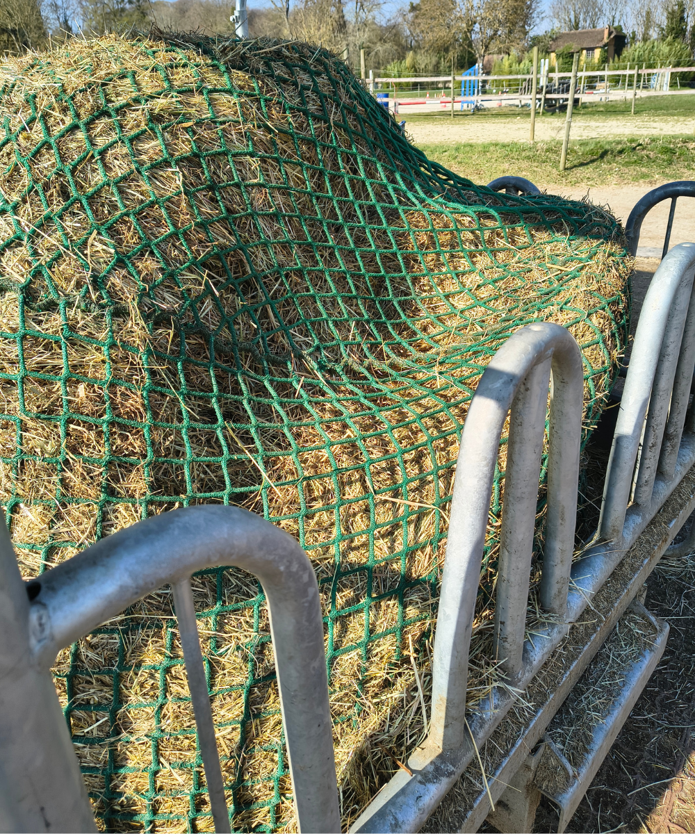 Le filet empêche les chevaux de fourrer leur nez dans le foin et d'y respirer la poussière, ce qui permet de prévenir le risque de pathologies respiratoires.