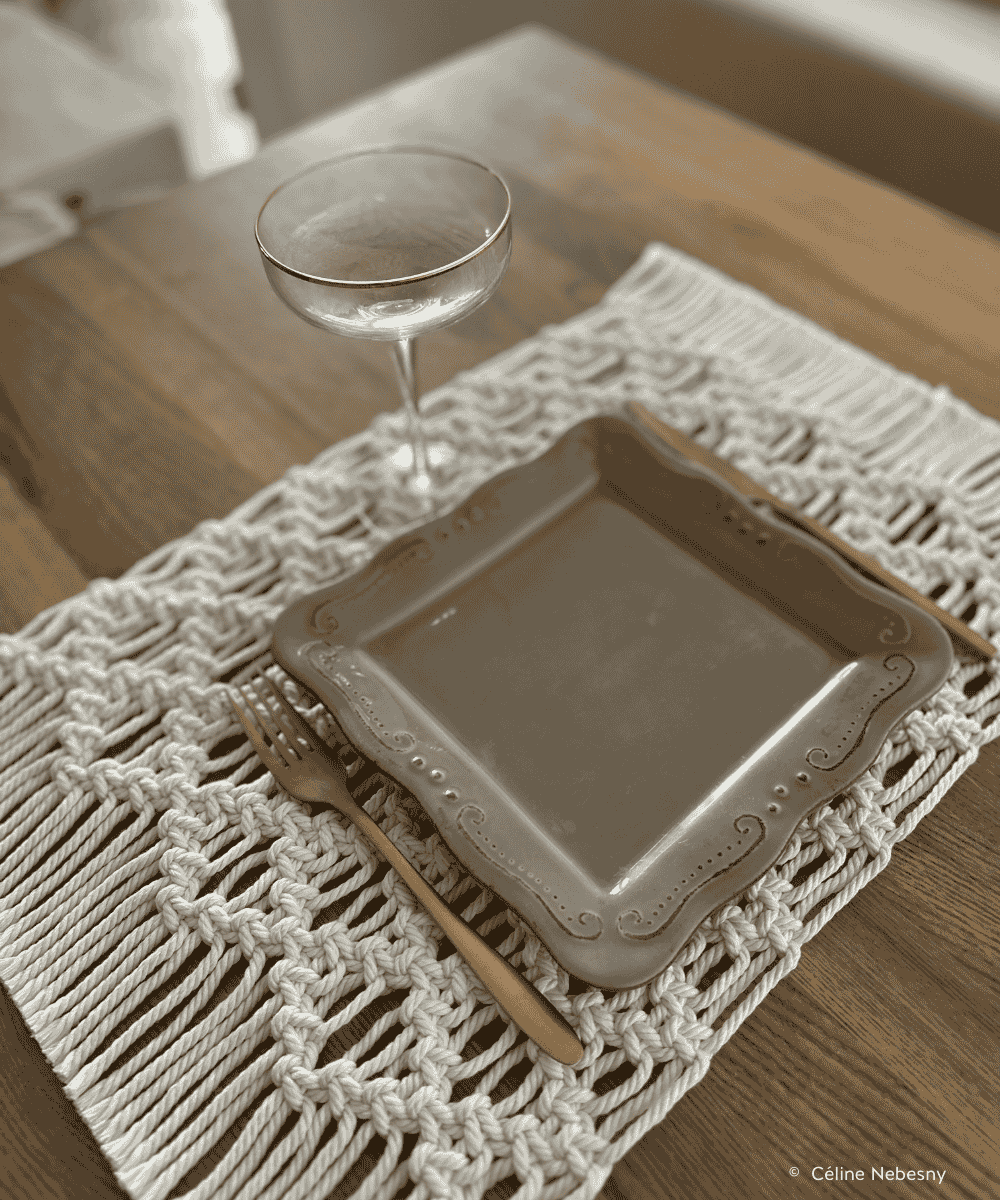 Nous vous conseillons d'utiliser la corde en coton torsadé 3mm. Elle se tient facilement, ce qui la rend parfaite dans l’apprentissage des nœuds macramé.