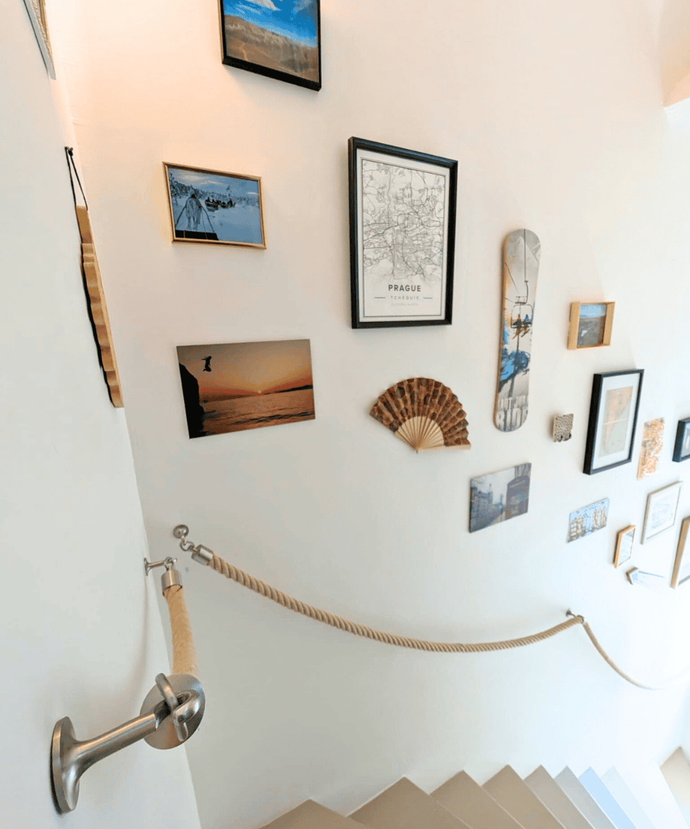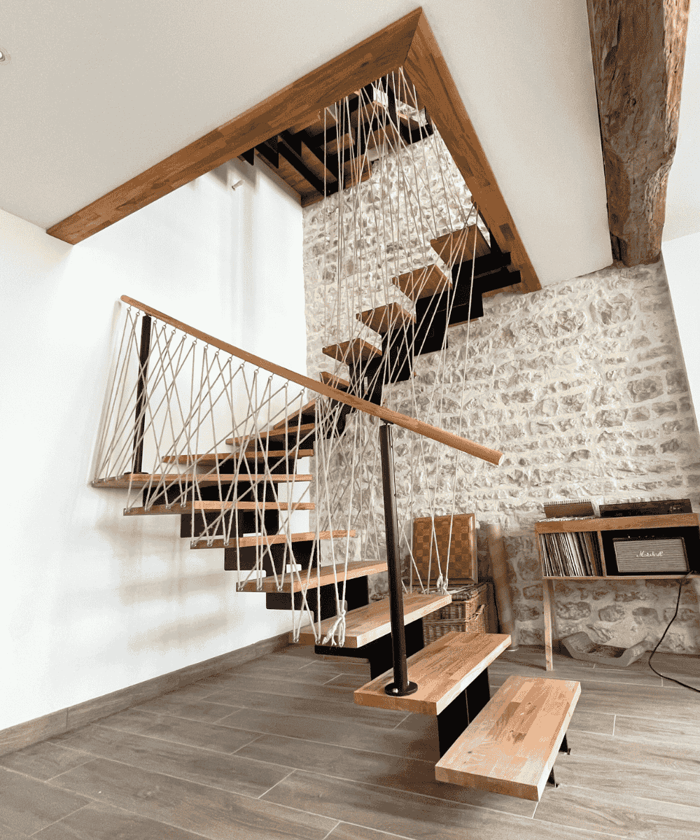 Pour une installation sécurisée et une finition soignée, sélectionnez vos anneaux muraux, embouts ou naissances murales en fonction de la configuration de votre escalier (angle, mur long…).