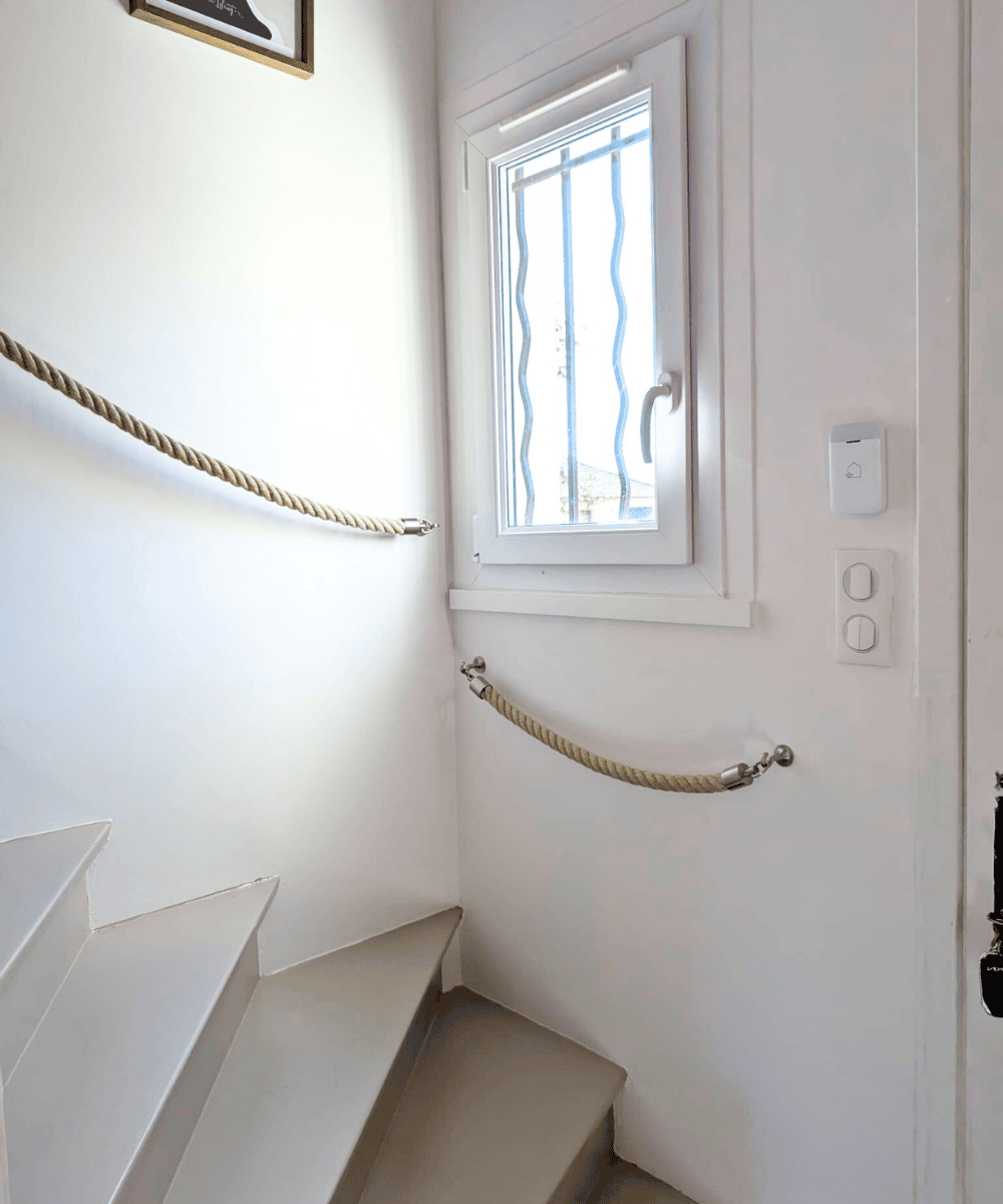 Pour un garde-corps en extérieur, nous conseillons la corde en chanvre synthétique ou la corde en polyester. Ces cordes sont imputrescibles, résistantes à l'humidité et traitées anti-UV.