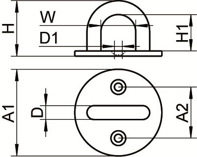 | Ø axe (D) | Largeur extérieure (A1) | Largeur intérieure (A2) | Hauteur totale (H) | Hauteur utile (H1) | Largeur (W) | Ø perçage (D1) |